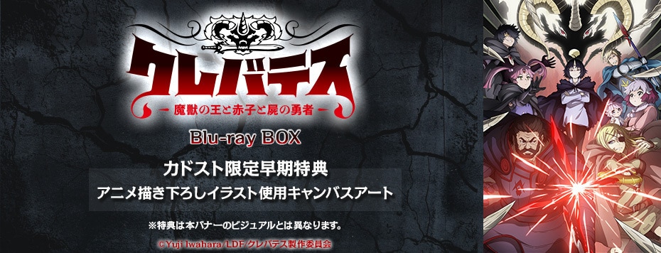 TVアニメ「クレバテス-魔獣の王と赤子と屍の勇者-」Blu-ray BOX を予約いただくと先着で、「アニメ描き下ろしイラスト使用キャンバスアート」をプレゼント!
