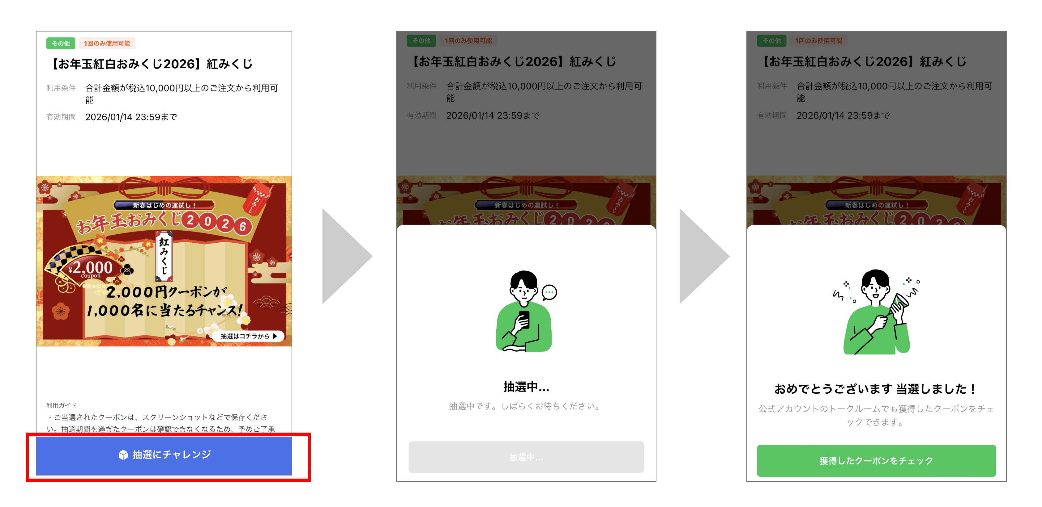 - ・今回のキャンペーンはLINEのプラットフォーム及びAPIを利用しております。システム障害などが発生し、クーポンの取得及び抽選案内メッセージの送受信が正常に行われない場合があります。予めご了承をお願いいたします。