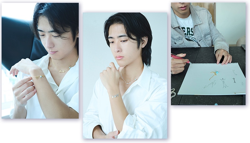 次々にアイディアを出しながらブラッシュアップし続け、その過程をも楽しみながら作ったネックレスとブレスレット。僕自身も「これは着けたい!」と思える仕上がりで、よりよいものを作れた実感があり、とても満足しています。