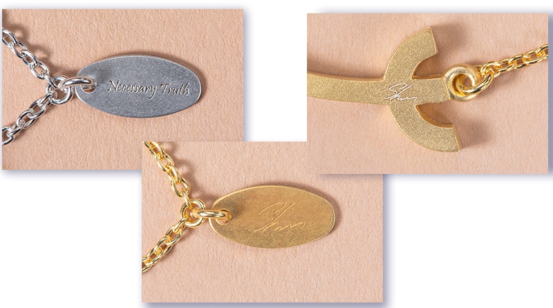 また、ブレスレットにもネックレスにも僕のサインを刻印しています。