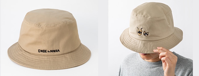 うしろには、描き下ろしロゴ「DOBE to NORA」の刺繍も入っています。アジャスターが付いているので、サイズを調整することができます。