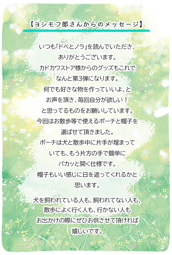 全アイテム描き下ろし!!おさんぽやおでかけにぴったりなポーチ、キャップ、バケットハットが登場です!