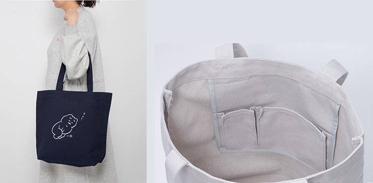 ナチュラル(キナリ)、ネイビー、ライトグレーの3色を用意しました。3色それぞれのイラストも描き下ろしです。