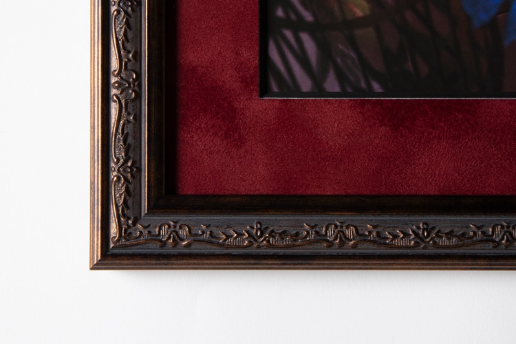 オリエンタルな雰囲気の額縁と、ベルベット調のマット(内枠)で高級感あふれる仕様にしました!