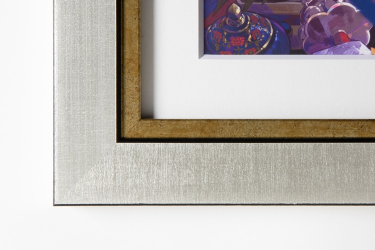 金の縁取りをあしらったシルバーの額縁に、パール調のきらめきが美しいマット(内枠)を合わせました。