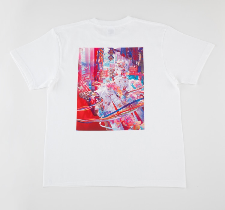 ホワイトのTシャツの背面にカバーイラストを大きくプリント。