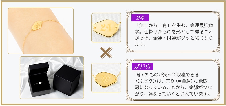 それぞれに、4つの開運数字とモチーフをあしらいました