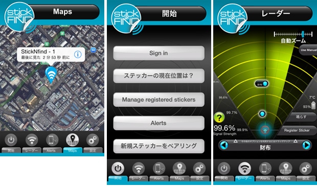 ステッカーを貼り付けると、スマホアプリ上のレーダー画面に表示。米国クラウドファンディングから生まれた話題のアイテム。