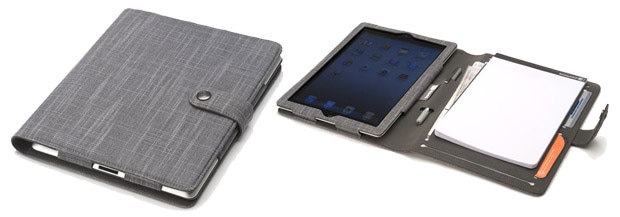 A5サイズノートとiPadが同時に使えるカバーパッド。ペンホルダーや名刺、カードを収納可能なポケットも装備。