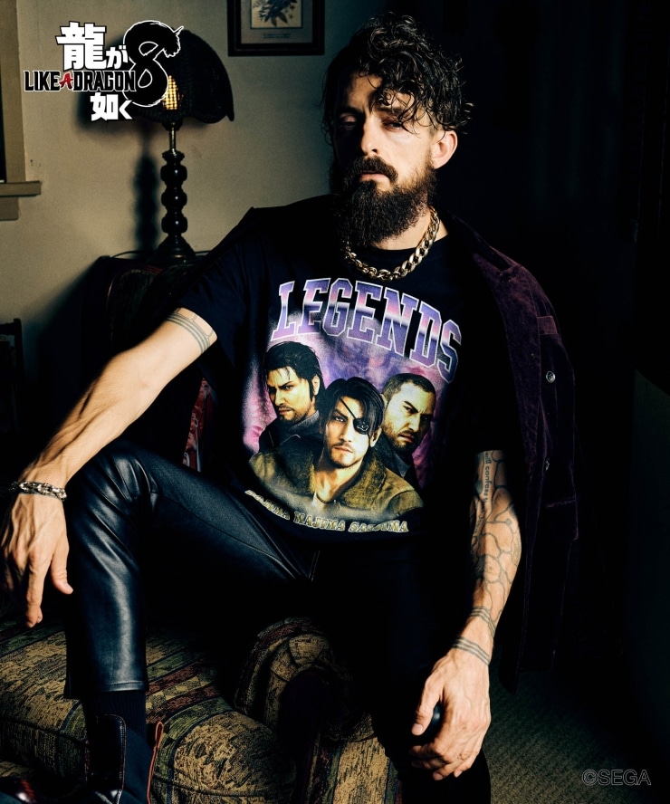 glambとゲーム『龍が如く8』がコラボレーション。シリーズにおける3人のレジェンドがストリートカルチャーのスタイルで登場する3 Legends T-shirts。
