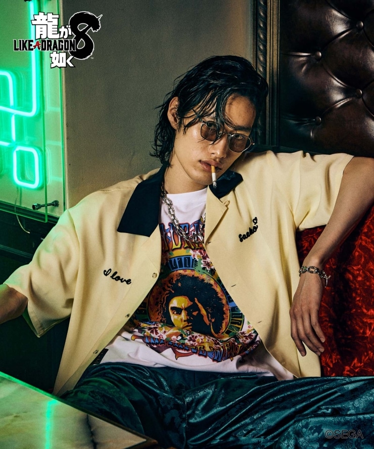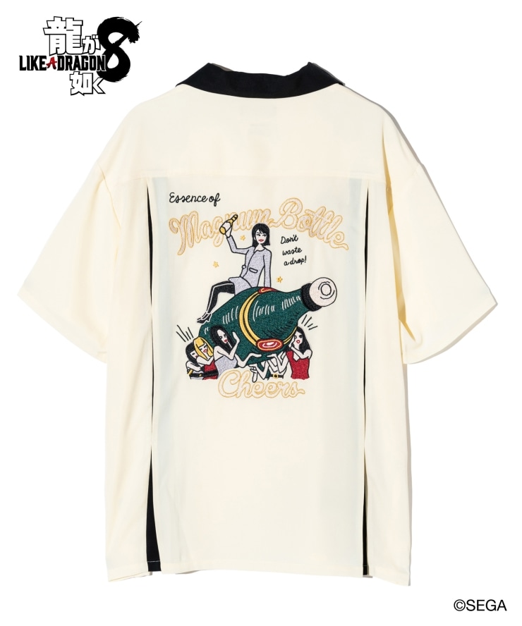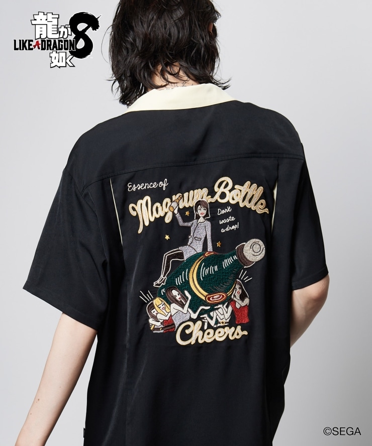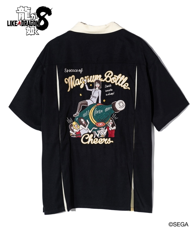 glambとゲーム『龍が如く8』がコラボレーション。作中に登場する横浜のキャバクラ「Club Silky Queen」共同経営者にして主人公・春日一番の戦友、向田紗栄子をレトロなボウリングシャツにデザインしたSaeko Mukoda Shirts。