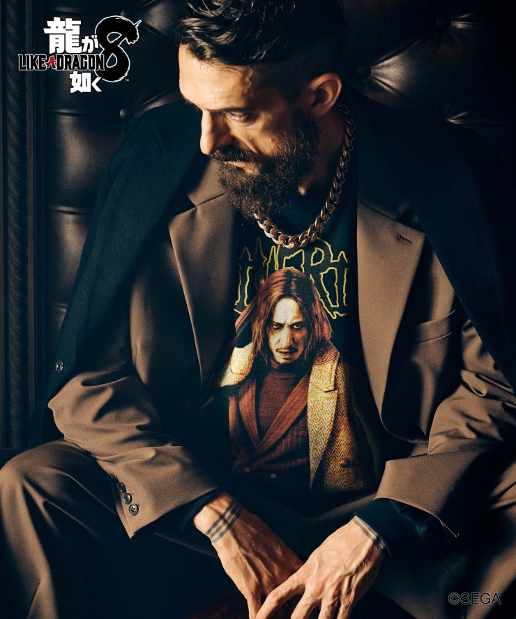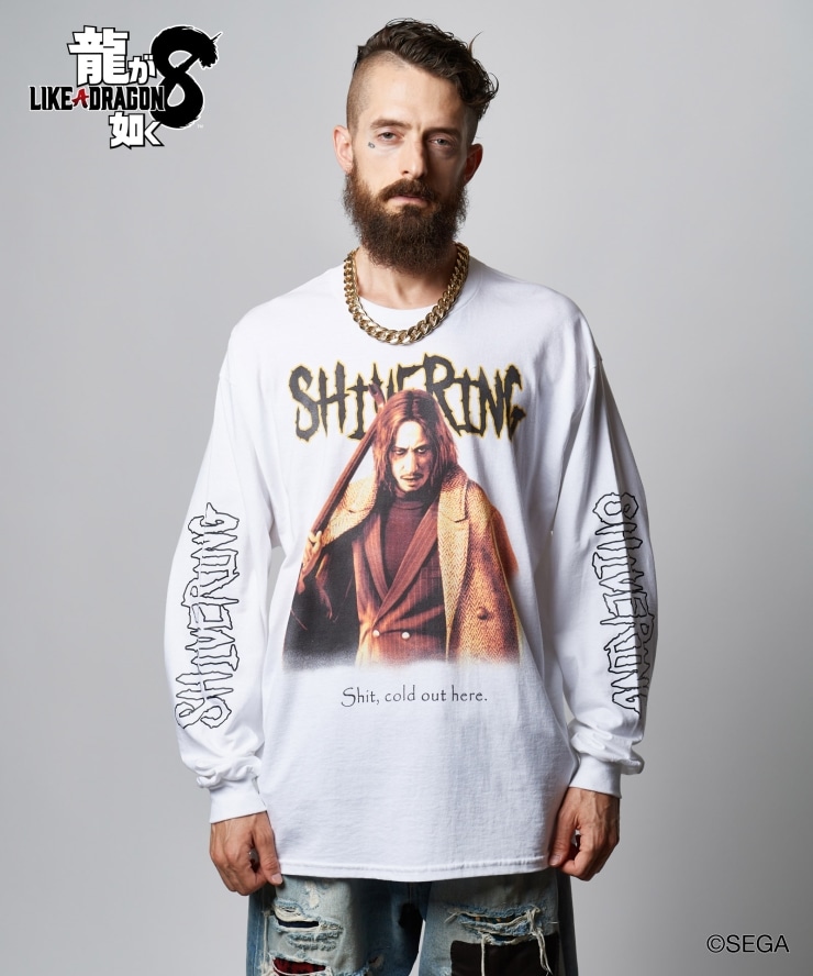 glambとゲーム『龍が如く8』がコラボレーション。物語の舞台となるハワイのギャングチームの頭目、山井豊の肖像をロングスリーブTシャツに乗せたYutaka Yamai Long Sleeves T-shirt。