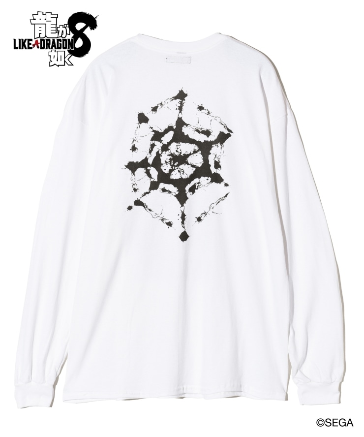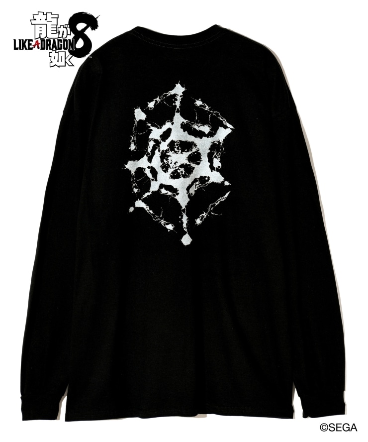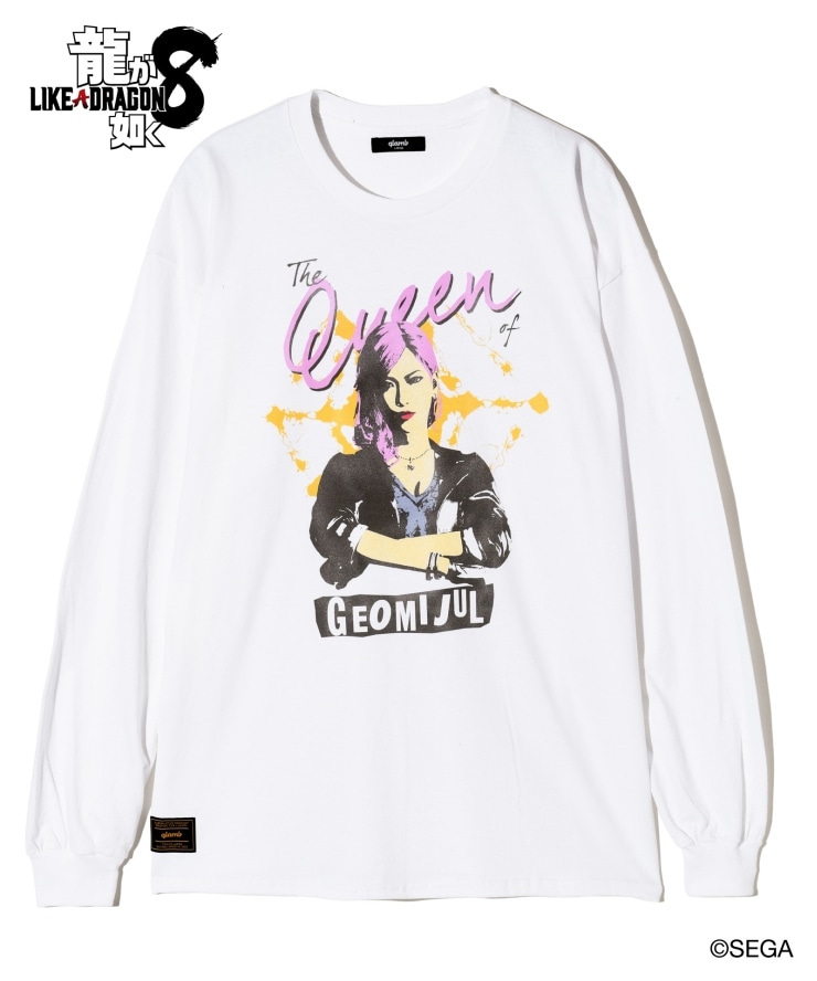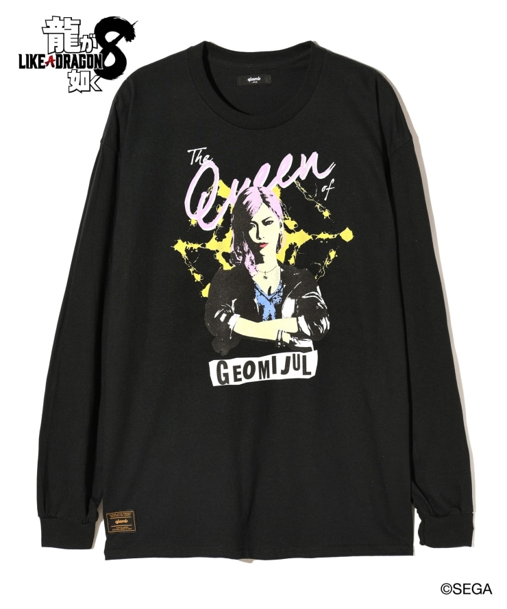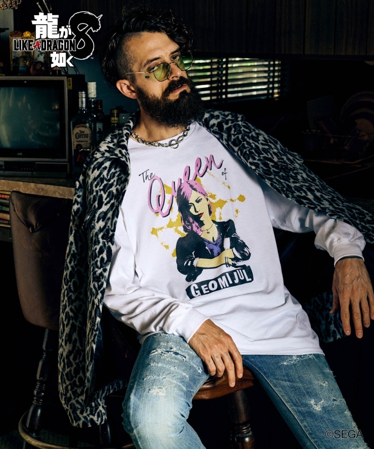 glambとゲーム『龍が如く8』がコラボレーション。横浜の裏社会を代表する巨大勢力「横浜流氓」と「コミジュル」を束ねる女傑、ソンヒをパンクスタイルのデザインに落とし込んだSeonhee Long Sleeves T-shirt。