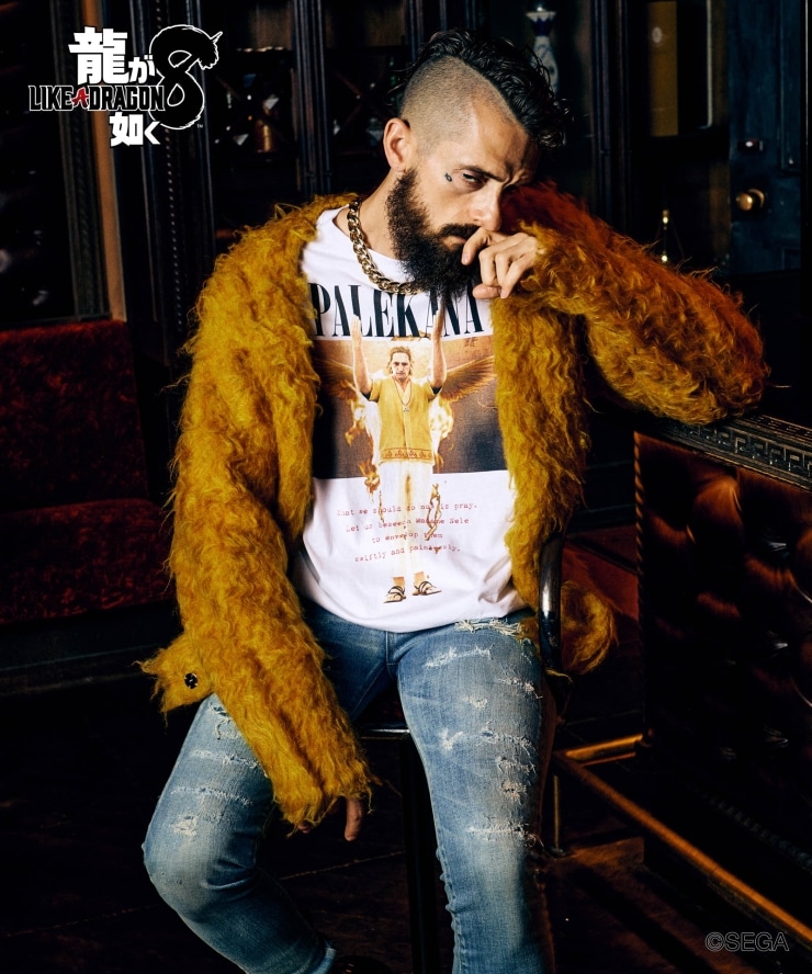 glambとゲーム『龍が如く8』がコラボレーション。ハワイの宗教団体「パレカナ」の代表、ブライス・フェアチャイルドをグランジロックのスタイルに融合したBryce Fairchild Long Sleeves T-shirt。