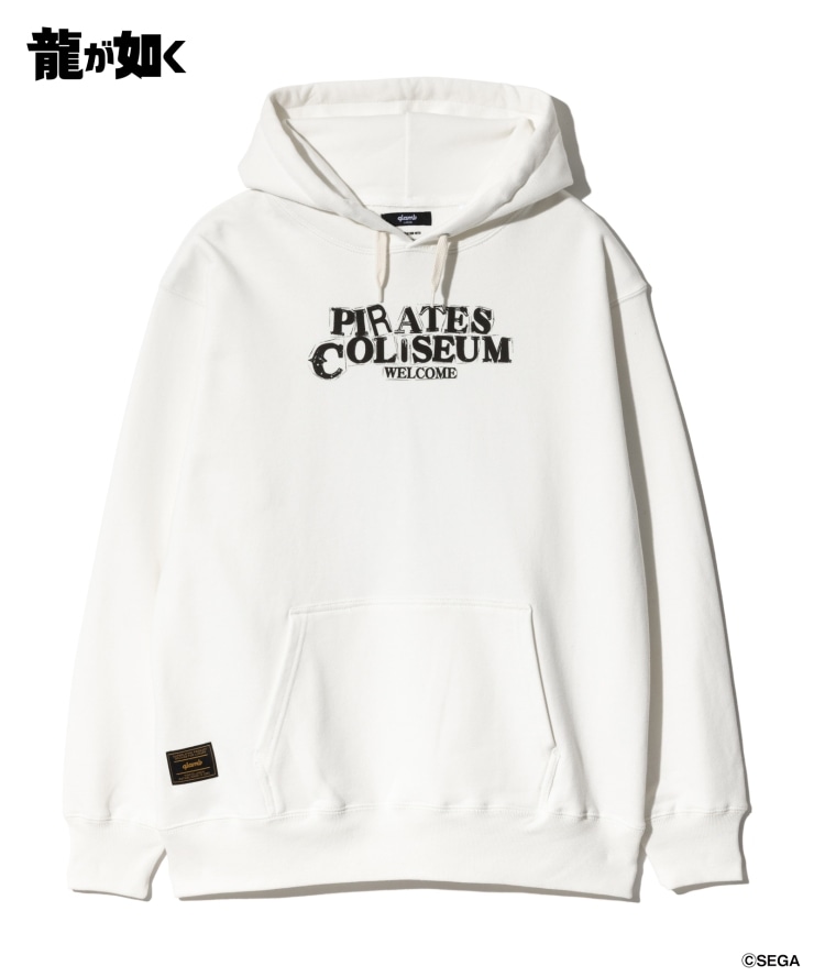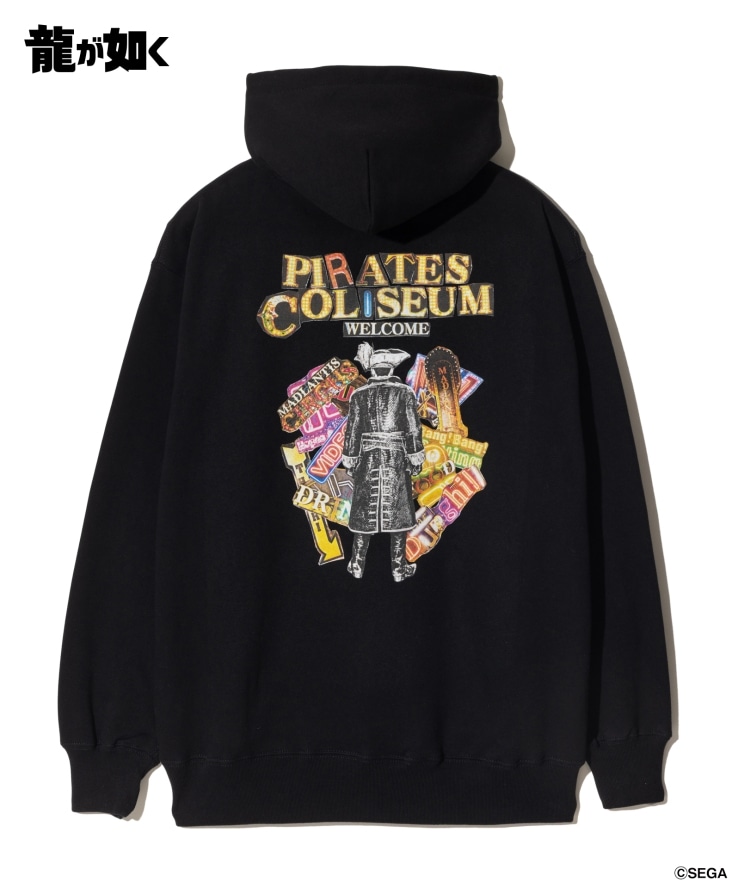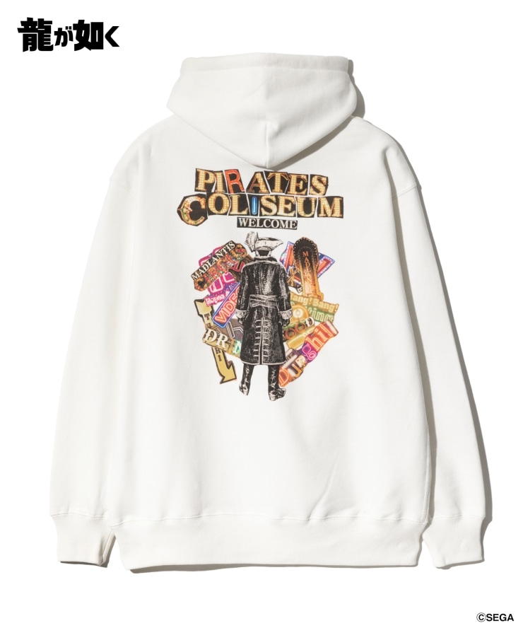『龍が如く8外伝 Pirates in Hawaii』に登場する闘技場、「パイレーツ・コロシアム」に対峙する真島吾朗をストリートトップスを代表するフーディに描き上げたMadlantis Hoodie。