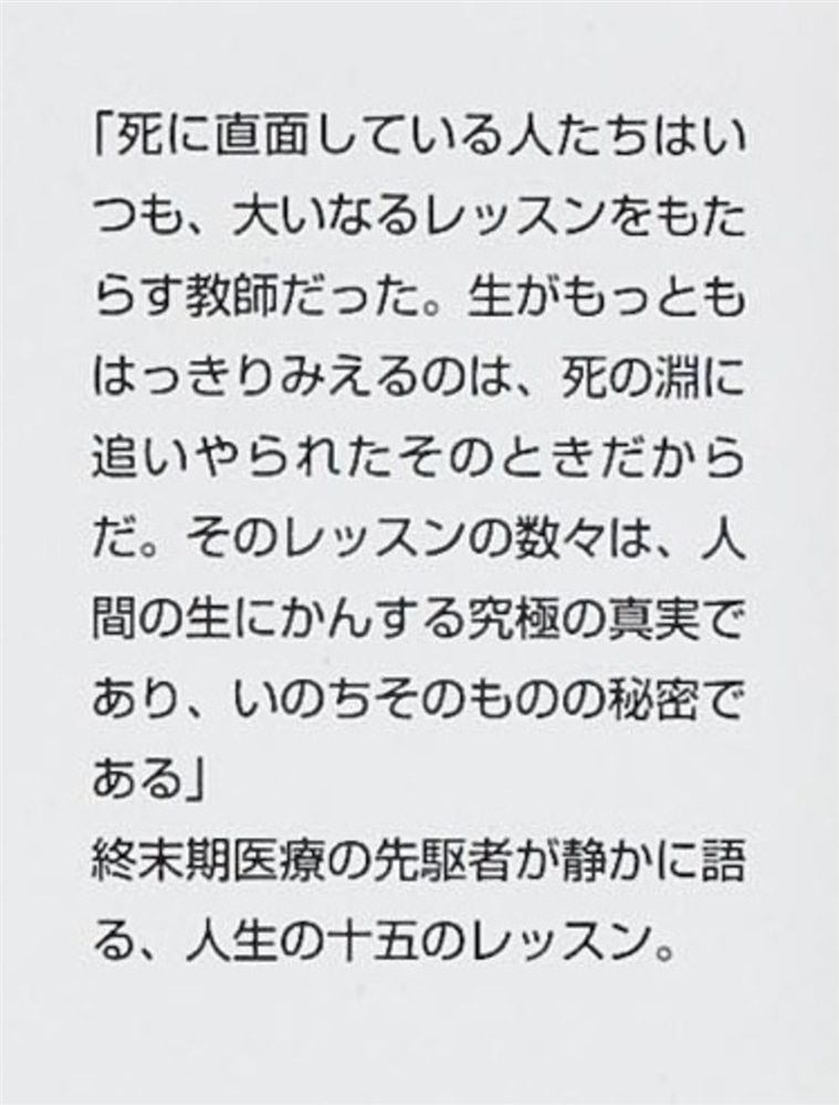 「一生」とよばれるこの時間のあいだには、学ぶべきさまざまなレッスンがある。とりわけ死に直面した人たちとともにいるとき、そのことを痛感する。死にゆく人びとは人生のおわりに多くを学ぶが、ほとんどのばあい、学んだ教訓を生かすための時間が残されていない。一九九五年にアリゾナの砂漠に移住したわたしは、ある年の「母の日」に脳卒中でたおれ、麻痺状態におちいった。それから数年間は、死の淵に立たされたままだった。すぐにも死がやってくるだろうと、幾度となく覚悟した。そして幾度となく、それが訪れてこないことに失望した。準備はできていたからである。でも、死ななかった。なぜなら、わたしにはまだ学ぶべきレッスンが、最後のレッスンがあったからだった。そのレッスンの数々は人間の生にかんする究極の真実であり、いのちそのものの秘密である。わたしはもう一冊、本を書きたいとおもうようになった。こんどは「死とその過程」についてではなく、「生とその過程」、つまり人生と生きかたについての本を。(著者エリザベスのメッセージより)