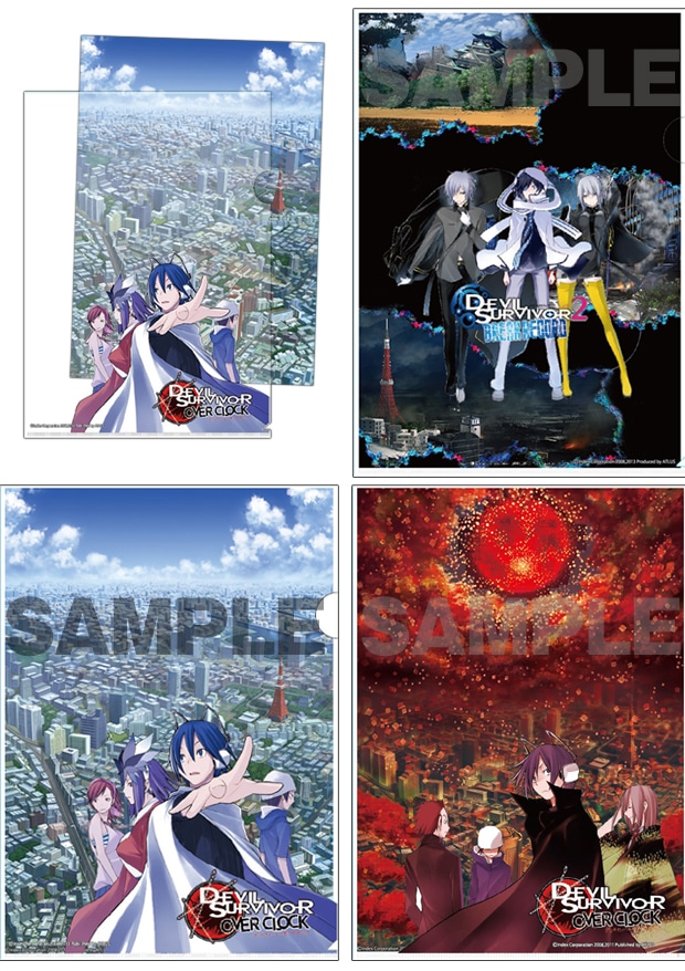 新作のデビルサバイバー2ブレイクレコードの絵柄では、舞台となる東京、大阪、名古屋をバックに主要キャラ達が登場!ファイル自体も中身が見えるクリア部分が大目の仕様なので、普段使いもできる!?