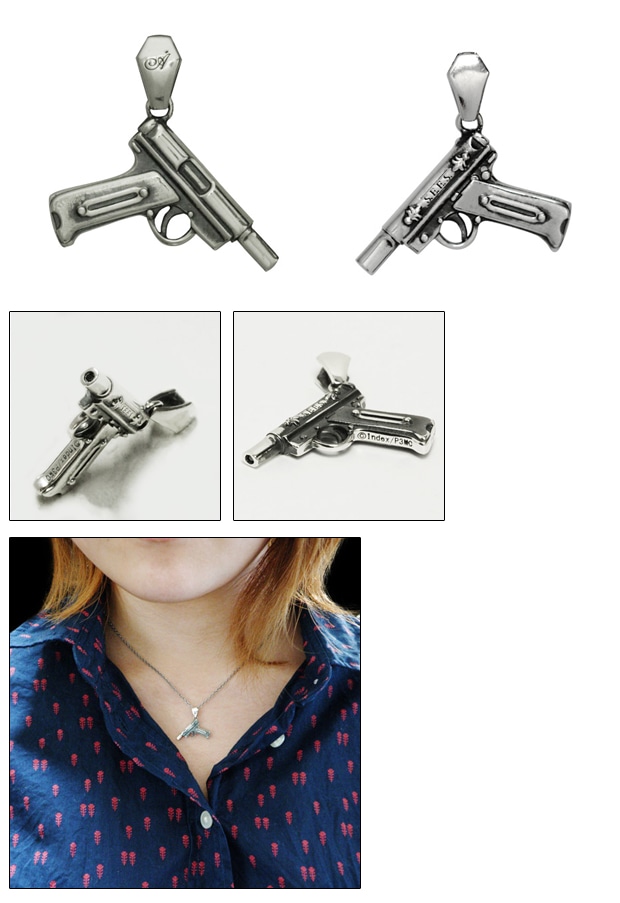 召喚器がペンダントトップに!劇場版モデルに合わせ、細部のディティールにもこだわり再現した一品です。銃口にはブラックの輝石が配置され、バチカンは棺桶を模した形になっています!