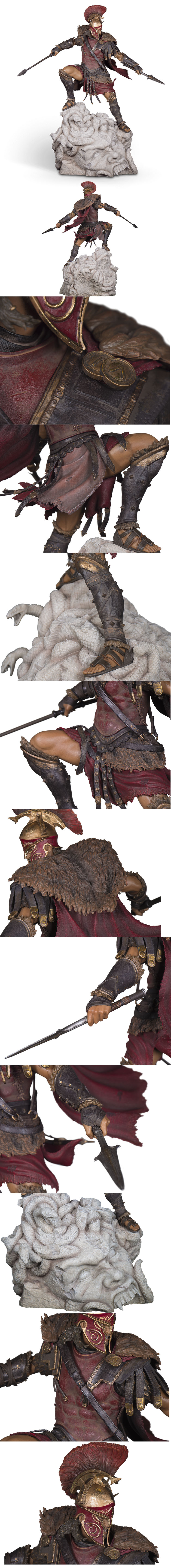 "アサシン クリード オデッセイからアレクシオスのレジェンダリーフィギュアが登場!ゲーム内にも登場するスパルタの防具を身にまとい、レオニダスの槍を手に持ちメデューサの上に立つ主人公のフィギュアです。