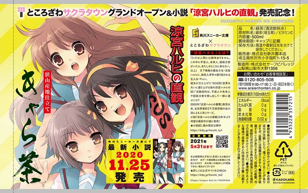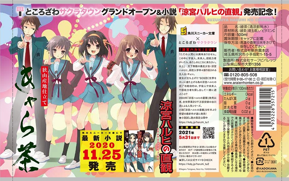 新井園本店「さやま茶」とのコラボ商品<きゃら茶>を、「涼宮ハルヒの直観」発売記念と