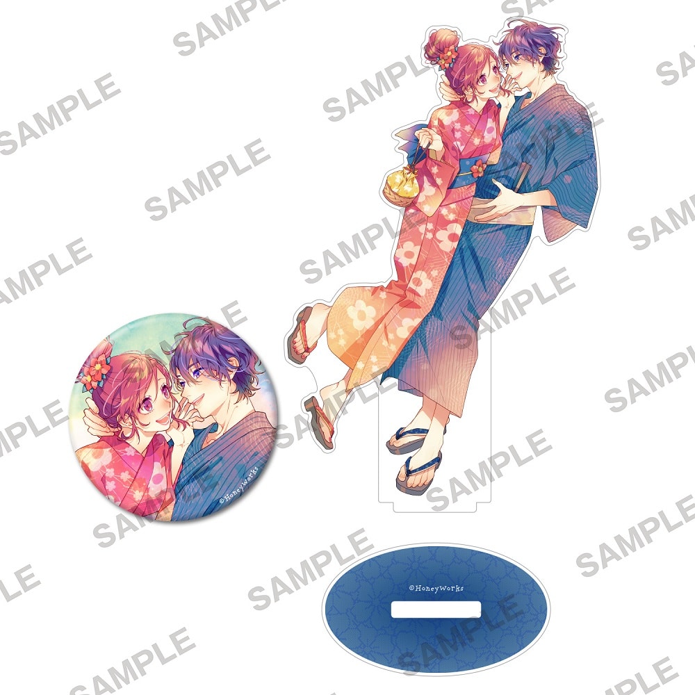 『告白予行練習 東京サマーセッション2021』表紙イラストを使用したアクリルフィギュア&缶バッジのセット。