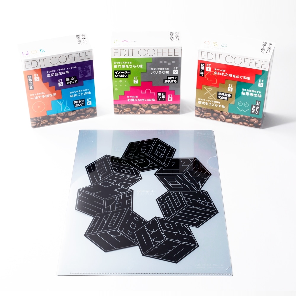 セット内容:レギュラーコーヒー(粉)1箱6袋入り×3箱、字紋クリアファイル(白)、字紋キューブ型抜き用紙