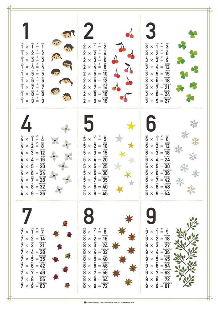 こどもが1日でいちばん長く過ごす リビングに貼りたいという想いから生まれた、おしゃれな『あいうえお表』『ABC表』『九九表』の3点セットです。