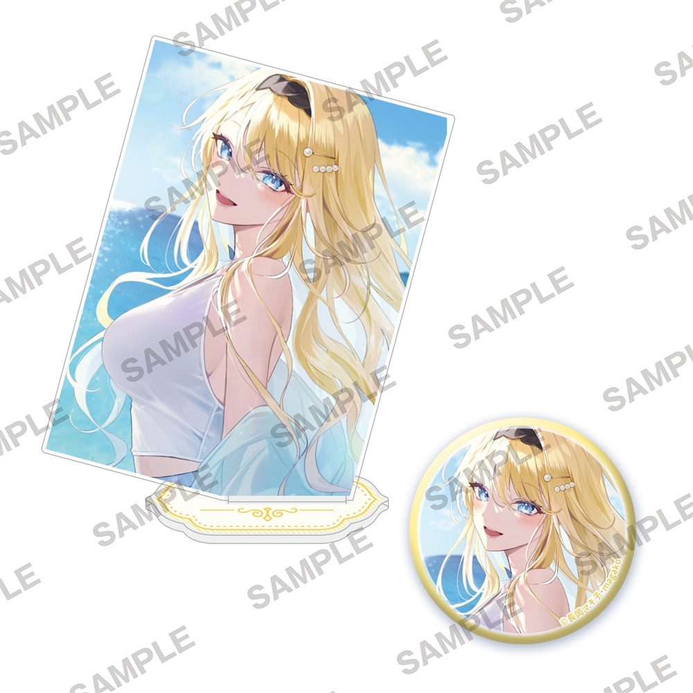 ファンタジア文庫「GWはファンタジアヒロインとお出かけデートへ!フェア」用に描き下ろされたヒロインのアクリルスタンドと缶バッジのセットです!