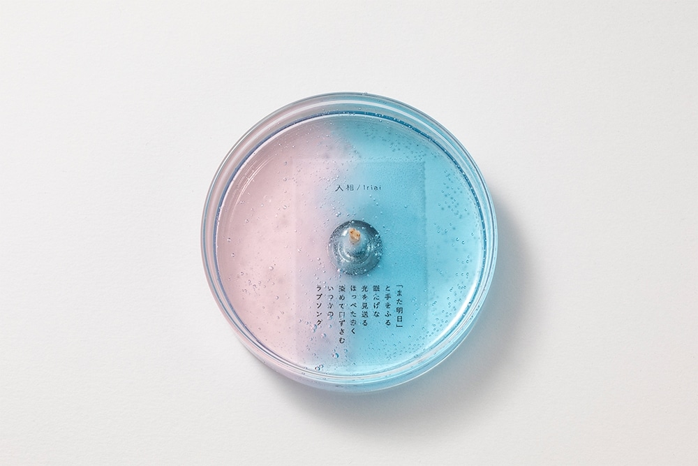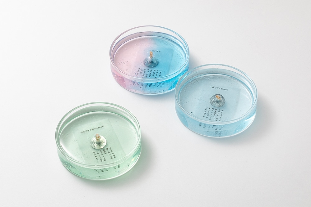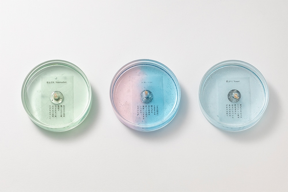 これら3つの時間をガラスシャーレの中にキャンドルと古性のちさんの言葉で作り出しました。