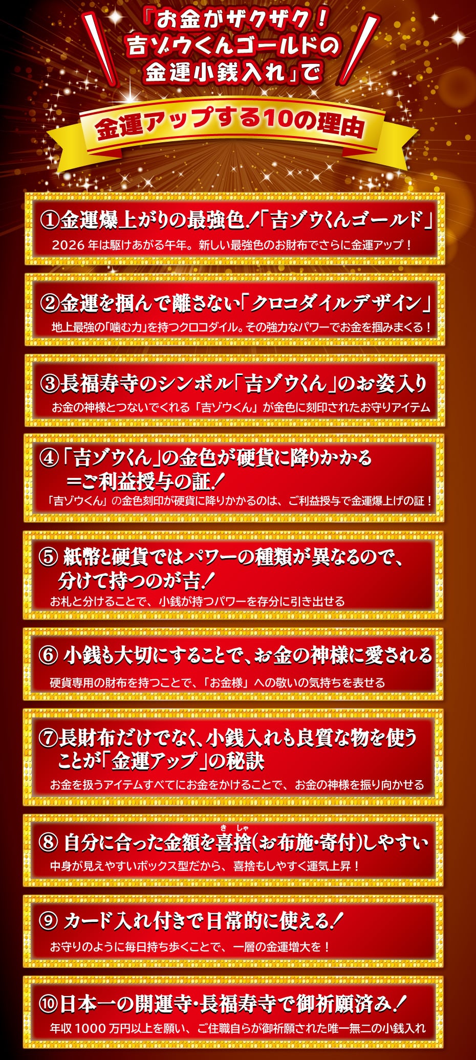 「長福寿寺 お金がザクザク! 吉ゾウくんゴールドの金運小銭入れ」の特設サイトは こちら