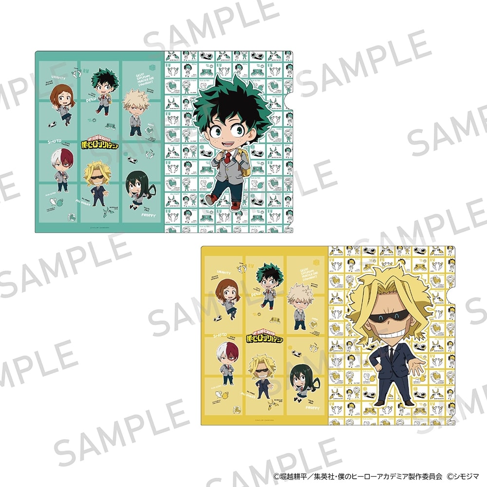 TVアニメ『僕のヒーローアカデミア』とシモジマのレトロ柄コラボ商品が登場!描き起こしちびキャライラストとレトロなコラボデザインを使用したA4クリアファイル2枚セットです。