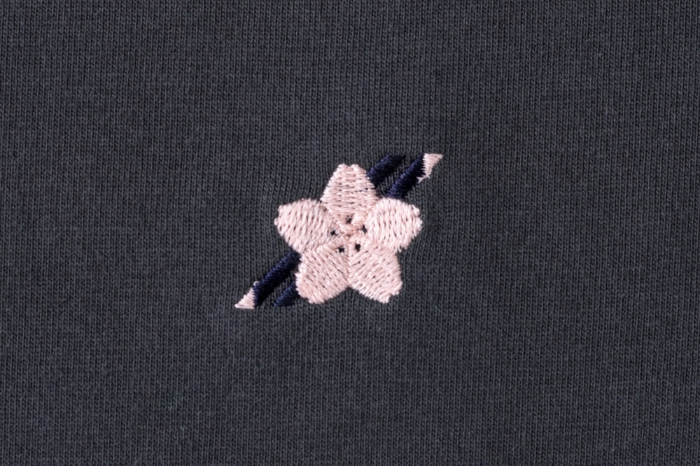 桜のモチーフに加えてチームロゴ風のデザインも刺繍されており、さりげなくチームを感じられる一枚です。