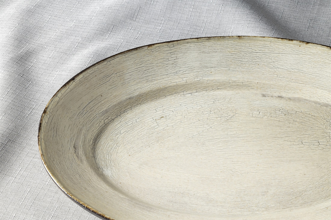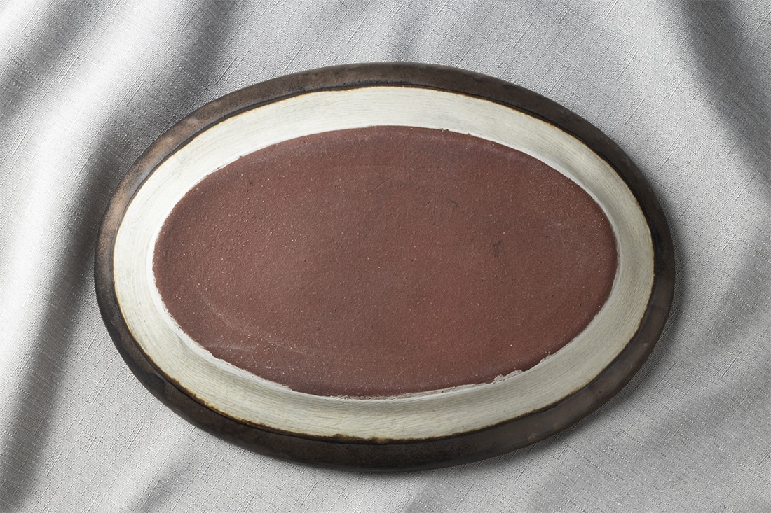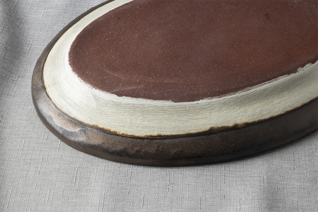 笠間焼の工房で一つ一つ手作りでつくられたオーバルの器です。発酵食品にぴったりの、麹や甘酒を感じさせる温かみのある色味、手作りならではのひとつひとつ異なる個性のある化粧。家族で楽しむ食卓の中心にも、ひとりで楽しむ、カレーやパスタにも丁度いい27.5㎝サイズです。