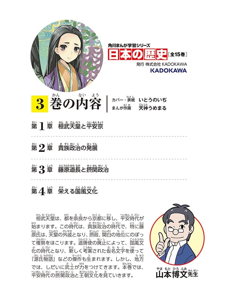 しかし、地方では、しだいに武士が力をつけてきます。本巻では、平安時代の摂関政治と王朝文化を見ていきます。