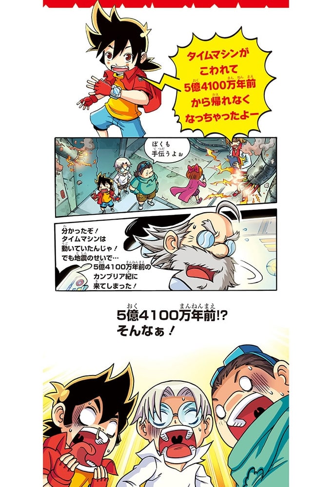 『恐竜キングダム』シリーズは、主人公たちがタイムマシンでワープし、5億年前から現代へと時間旅行。でさまざまな生き物に対峙し、活躍する姿が描かれています。