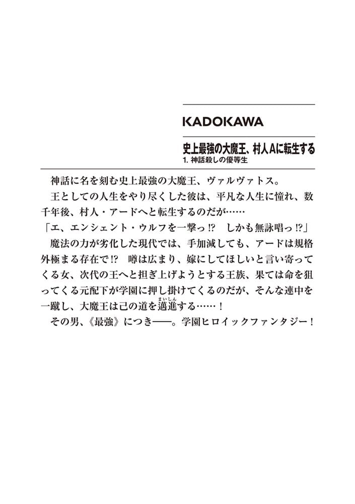 史上最強の大魔王、村人Aに転生する 1.神話殺しの優等生