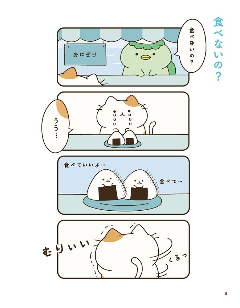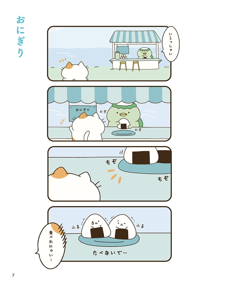 登場キャラは、店長のかっぱ「かっぱのすけ」や食堂の常連さんの心優しいねこ「ねこた」、南極に友だちをつれて帰ることが夢なペンギン「ぺんきち」など……さらに物語を彩るのは、なぜか命が宿ったちょっと切ない食べ物たちです。ちょっとシュールでくすっと笑える、クリエイター・ちいさんぽワールドをたっぷり楽しめる1冊となっています。