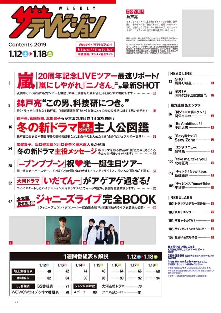 ザテレビジョン 広島・山口東・島根・鳥取版 2019年1/11・1/18合併号