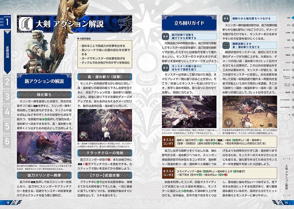 新アクションの使いかたや、新モンスターの弱点、自由度の高まったカスタム強化、追加マップの詳細など、マスターランクの狩猟生活に欠かせない情報が満載の攻略本!