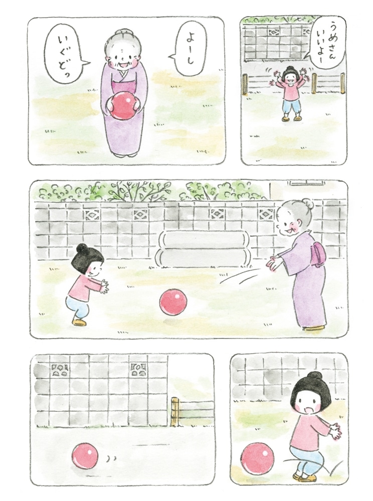 舞台は昭和50年代の秋田県。小梅さんはお父さんとお母さん、おばあちゃんの梅さんと暮らしています。