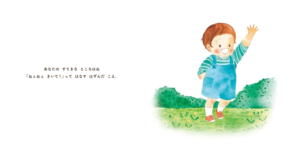 ●「元気に生まれてきてくれればいい」と思っていたのに、気づけば「あれもこれもできるようになってほしい」と欲ばりに。日常に追われて見失っていたことを思い返すきっかけになりました。我が子の「すてきなところ」を伝えながら読んであげたいです。(30代)