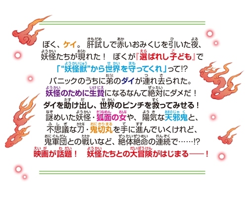 映画「妖怪大戦争 ガーディアンズ」の公開を記念して、遊びながら色々な妖怪を知ることができる<妖怪バトルカード>を限定生産!カドカワストアで対象書名を買うと、特典として妖怪バトルカード「ぬらりひょん」「一本だたら」がついてくるよ。たくさんの妖怪を集めて、友だちや家族とバトルしよう!! 妖怪バトルカードについて、くわしくはこちら 妖怪バトルカード絵柄はこちら↓