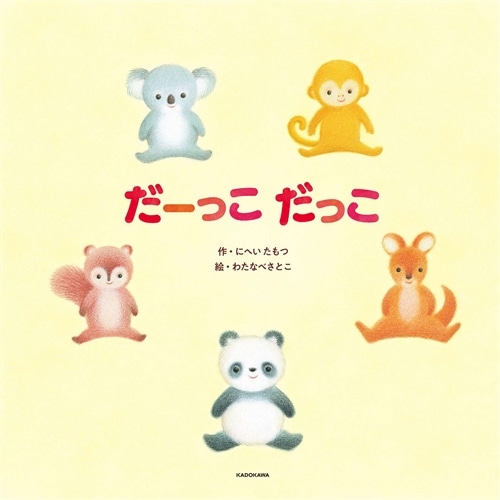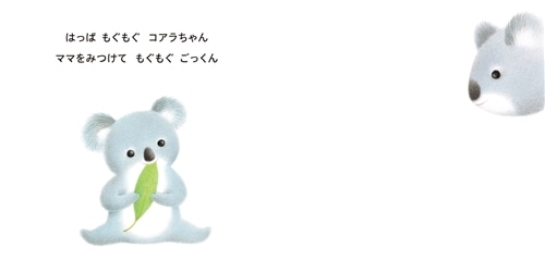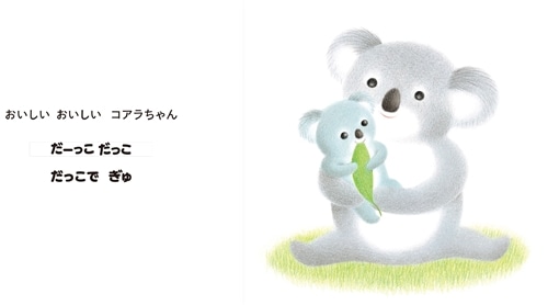 「おめめ ぱっちり こりすちゃん ママをみて にっこ にこ」「うれしい うれしい こりすちゃん だーっこ だっこ だっこで ぎゅ」 コアラちゃん、おさるちゃん、カンガルーちゃん、パンダちゃん、そして、人間の赤ちゃん。ママは、「おいで おいで だいすきあかちゃん だーっこ だっこ ママだっこ ぎゅ」 パパは、「げんきに そだて だいすきあかちゃん だーっこ だっこ パパだっこ ぎゅ」 赤ちゃんもママパパも、心が元気になり、優しい気持ちとゆとりを与えてくれる絵本。