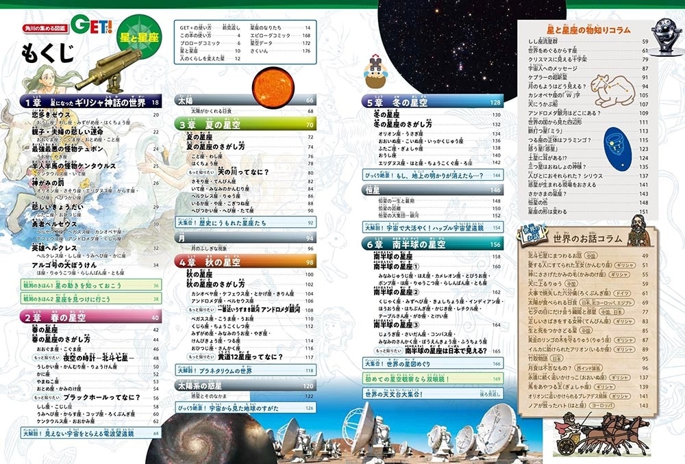 星座はなぜ生まれたのか…起源や歴史をひもとき、星座の成り立ちを知れば、わたしたちのくらしと夜空にうかぶ星がいかに密接に関わっているのかがよくわかります。春夏秋冬の夜空にうかぶ星座の探し方も分かりやすく誌面でも説明しているほか、特典動画をチェックするとプラネタリウム解説員である永田美絵先生の解説が聞けます!ほかにも、ギリシャ神話をはじめ世界のおもしろい、せつない、めずらしい神話、ブラックホールの秘密など、気になるトピックスをたっぷり紹介しています!