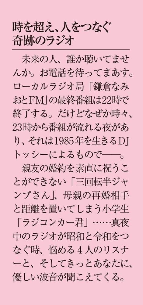 ローカルラジオ局「鎌倉なみおとFM」の最終番組は22時で終了する。だけどなぜか時々、23時から番組が流れる夜があり、それは1985年を生きるDJトッシーによるもので――。