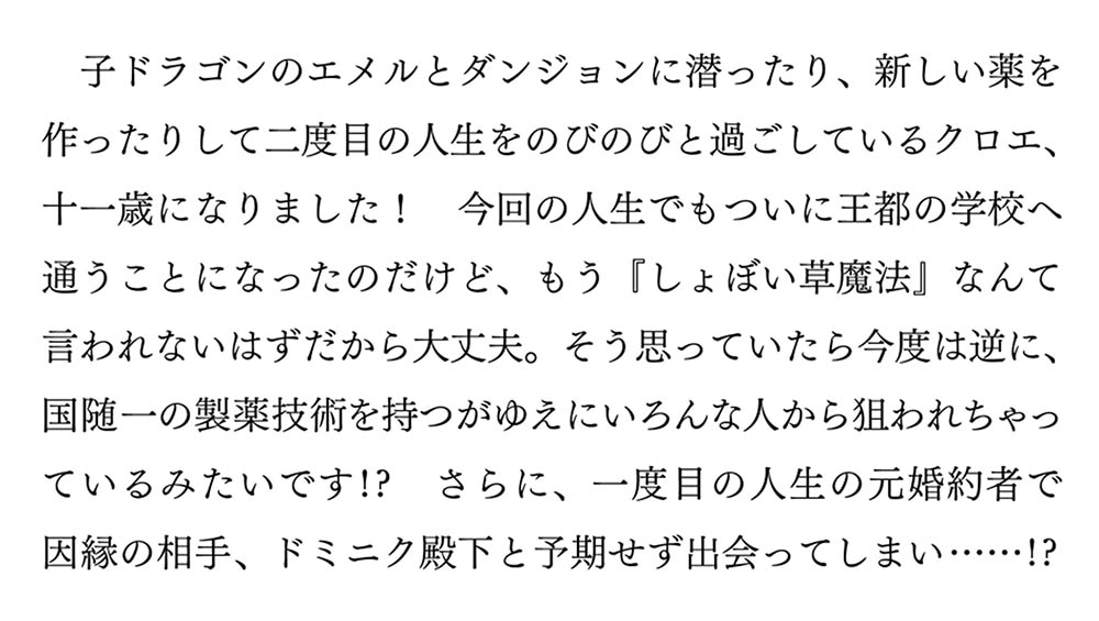 子ドラゴンのエメルとダンジョンに潜ったり、新しい薬を作ったりして二度目の人生をのびのびと過ごしているクロエ、十一歳になりました!