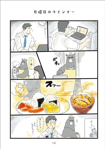 とある町の片隅で、クマがはじめた夜食の出前店。従業員はサケ、ゴリラ、ネコ。