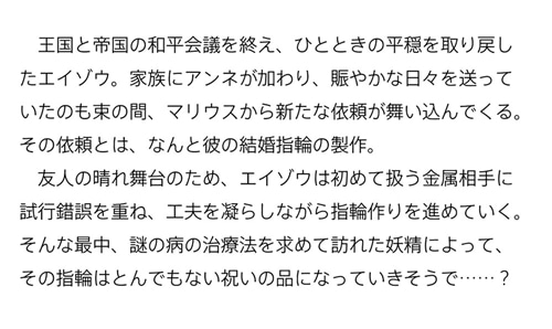 そんな最中、謎の病の治療法を求めて訪れた妖精によって、その指輪はとんでもない祝いの品になっていきそうで……?