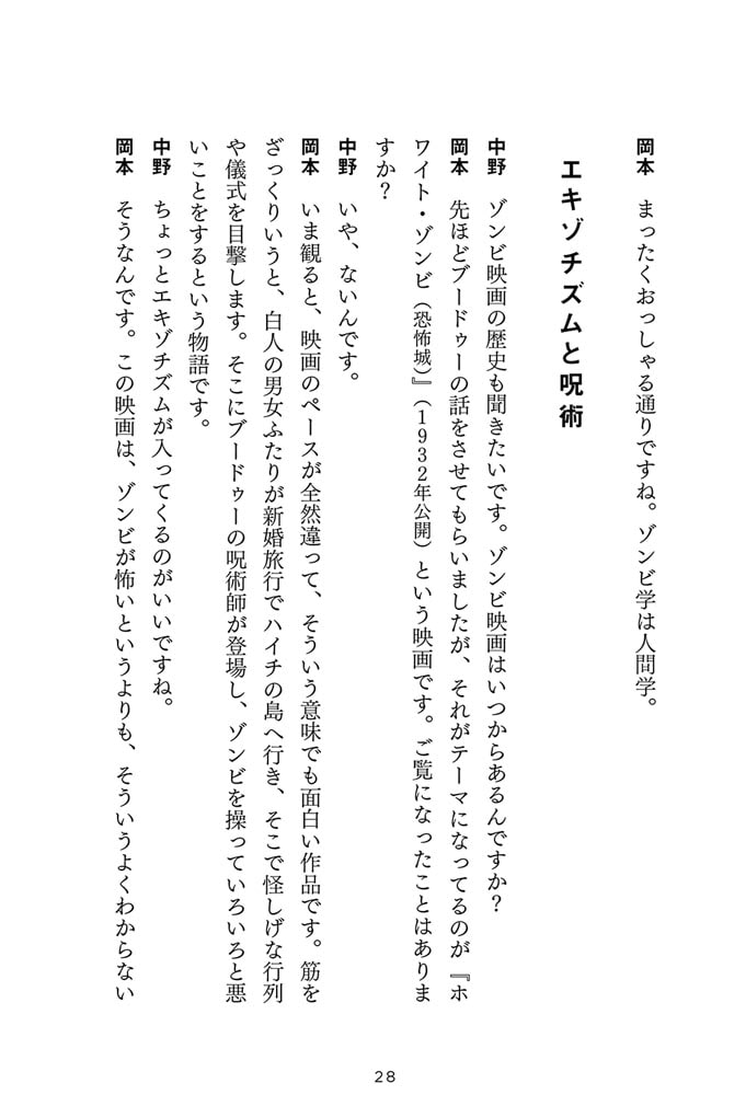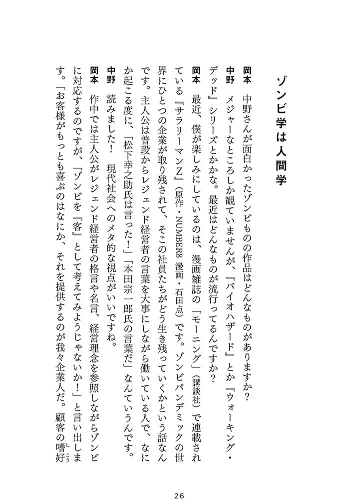 脳科学者である中野信子とメディア・コンテンツの研究者ながらVtuber「ゾンビ先生」としても活躍する岡本健がゾンビというフィルターを通して社会を捉え直した1冊。
