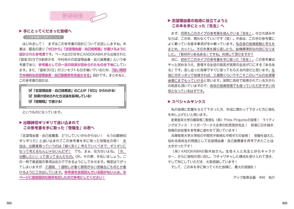 時間がない受験生必見! 「ゼロから」「志望理由書・自己推薦書」が書けるように設計された参考書です。